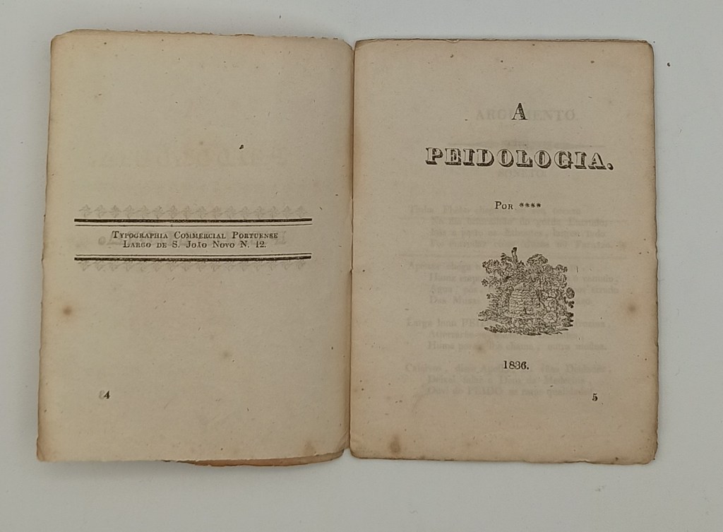 7866 – Amaral, Domingos Monteiro de Albuquerque e – A PEIDOLOGIA. Porto. Typographia Commercial Portuense. 1836. 29 pp. (in 16º). 12, 5 cm x 10 cm. B.