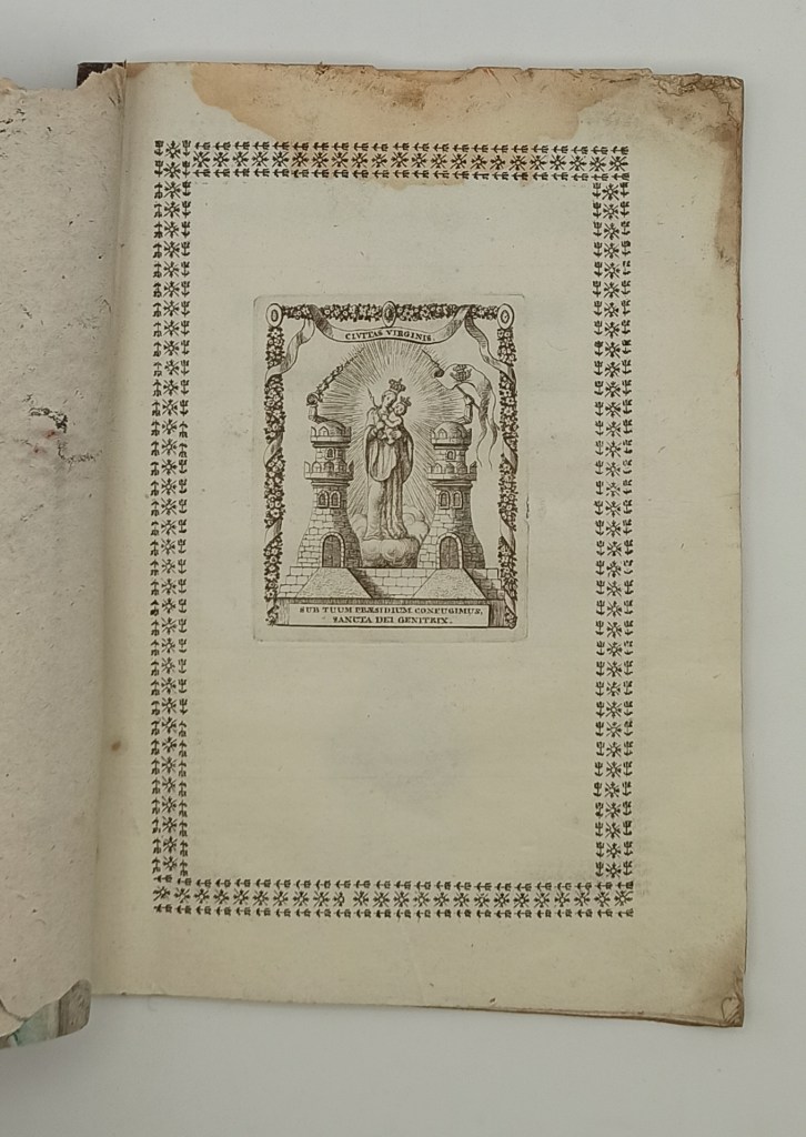 O folheto abre com uma gravura em que está representada a Virgem Padroeira do Porto, “Civitas Virginis”.