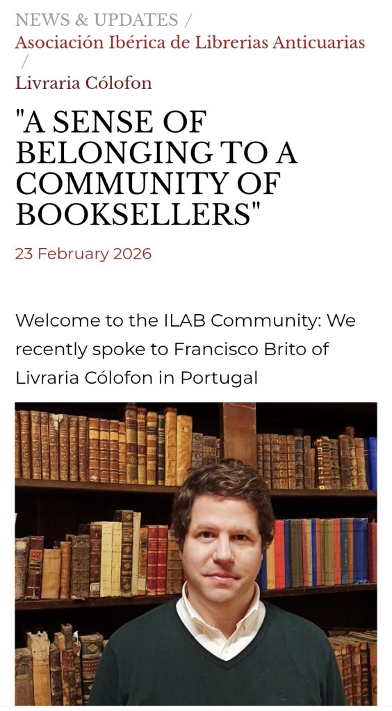 “Francisco Brito recently joined the Spanish Antiquarian Booksellers Association and, therefore, our ILAB community. We spoke to Francisco about his business, the book trade in Portugal and what motivated him to join our network. “